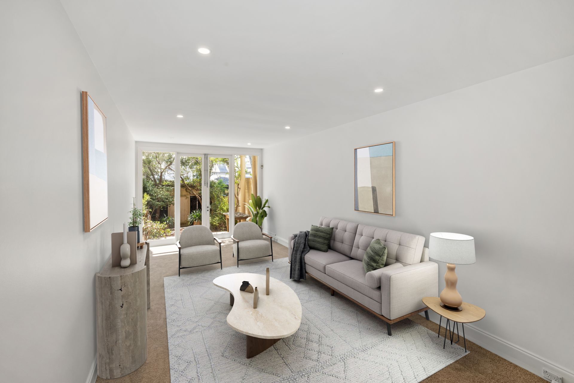 - Sunny courtyard and entertaining space with garden
